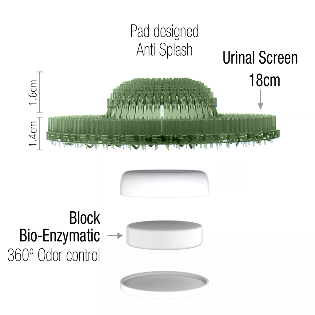 Advanced Bio-Enzymatic Action: These screens don’t just mask odors—they eliminate them. Active bacteria continuously digest uric acid and organic waste, cleaning both the urinal surface and the drain plumbing beneath.